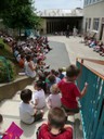 Vendredi 26 juin, tous les élèves avec leurs enseignants avaient préparé une petite fête pour la directrice, à l’occasion de son départ. Pendant qu’elle travaillait au secrétariat, ils se sont tous réunis dans la cour pour lui faire la surprise et lui offrir des cadeaux de toutes sortes : collier de nouilles (incontournable) , dessins, portrait grand format, cartes personnalisées, chansons écrites pour l’occasion, petit concert de musique … un moment inoubliable et émouvant.